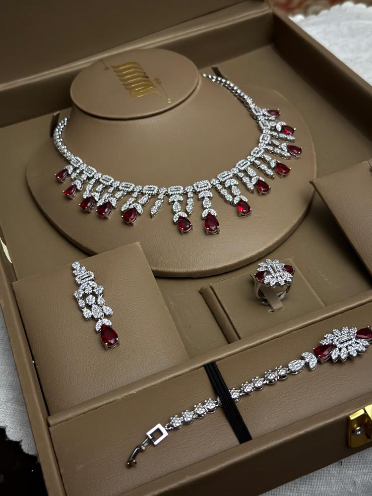 طقم بديل الماس مرصع باحجار الون الاحمر