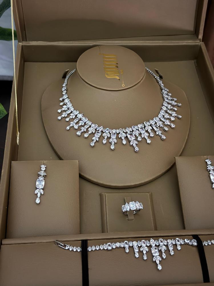 - طقم زركون فخمة يناسب جميع ألوان البشرة ويبرز جمال الرقبة والوجه