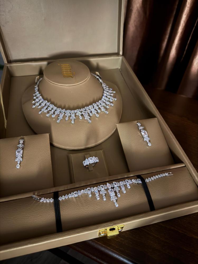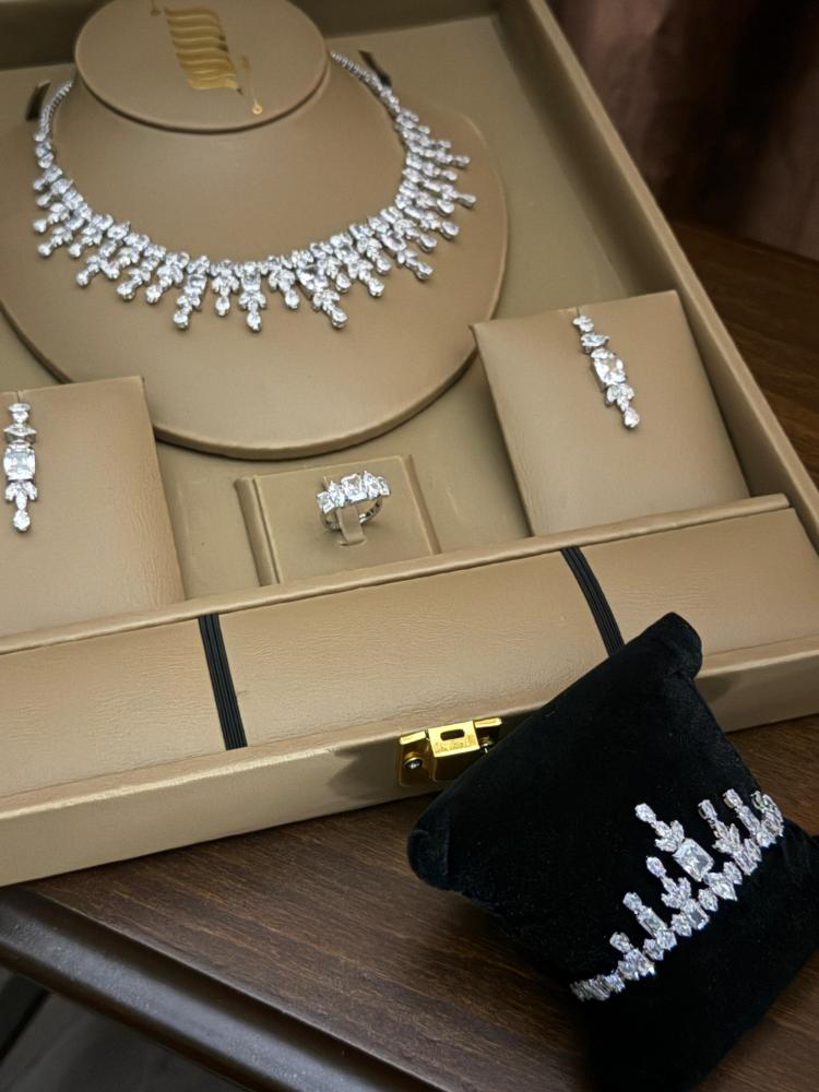 - اسم المنتج: طقم زركون فخمة فضي فخم